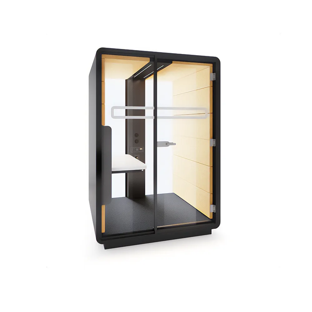 HushFree S: jouw toevluchtsoord van sereniteit op kantoor! Mikomax HushFree Small biedt de perfecte oplossing voor vredige telefoongesprekken op de werkvloer. Deze ultramoderne akoestische belcel biedt niet alleen de hoogste geluidsisolatie op de markt, maar is ook speciaal ontworpen met jouw welzijn en vitaliteit op het werk in gedachten. Akoestiek speelt een essentiële rol in de kantooromgeving, en daarom is Mikomax HushFree Small de beste keuze!